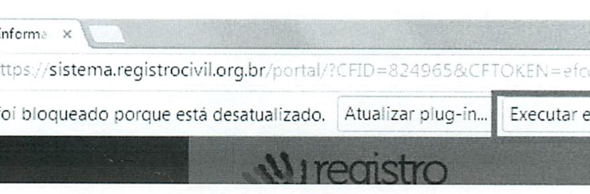 3) ALERTAR que, caso o acesso ao módulo seja através dos navegadores Google Chrome ou Mozilla Firefox com versões desatualizadas do JAVA, poderá ser necessária a autorização, pelo usuário, da execução de um plug-in, conforme informado pela STI e visualizado na figura abaixo: