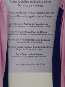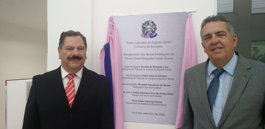 O Corregedor Geral da Justiça do Estado do Espírito Santo, desembargador Ronaldo Gonçalves de Sousa esteve presente na inauguração da nova sede do Fórum Desembargador Josias Soares, do Juízo de Anchieta, hoje (16/09/2016) às 10h30min.