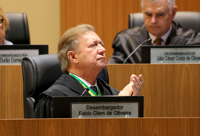 O desembargador Dair José Bregunce de Oliveira, amigo de longa data do desembargador Fabio Clem, ficou encarregado de prestar as homenagens em nome da Corte e ressaltou a trajetória do magistrado sempre com elegância no trato do debate jurídico, no relacionamento com os colegas, com as senhoras advogadas e os senhores advogados, com os servidores, do mais humilde ao mais graduado.