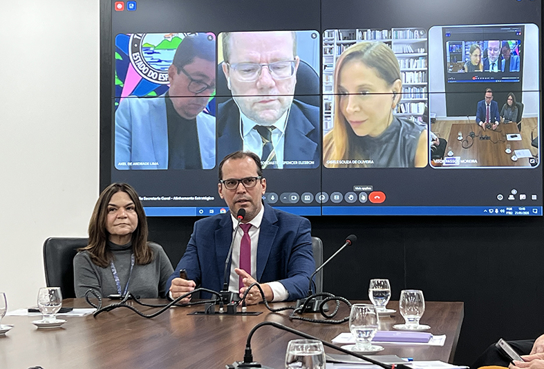 A reunião híbrida recebeu, de forma online, a presença do Juiz Salomão Akhnaton Zoroastro Spencer Elesbon, Coordenador dos Juizados Especiais Cíveis, Criminais e da Fazenda Pública; a Juíza Gisele Souza de Oliveira, Coordenadora das Secretaria Judiciária e Juiz Akel de Andrade Lima, Coordenador de Engenharia. Presencialmente estiveram a Juíza Cristina Eller, Coordenadora da Infraestrutura; Juiz Thiago Albani, Coordenador de Gestão de Pessoas e Thiago Cardoso, Coordenador de Planejamento.