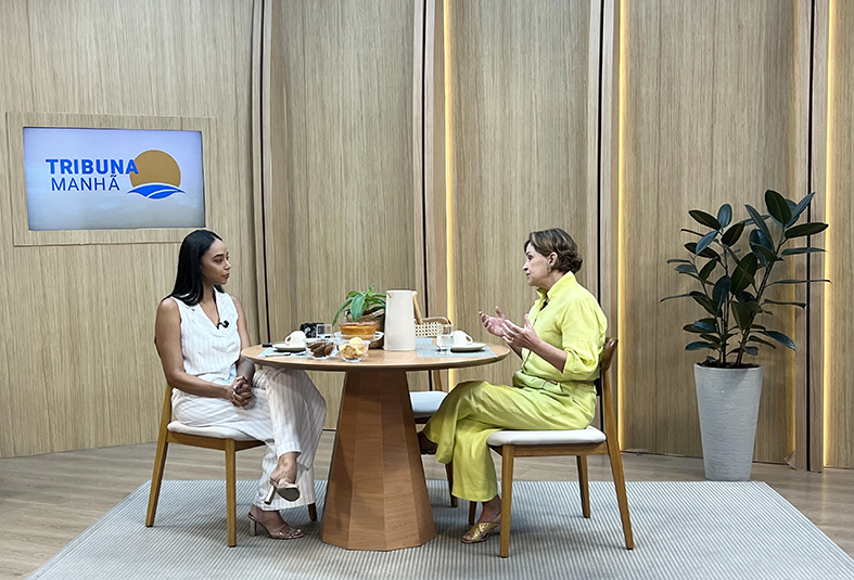 Após conhecer todas as instalações físicas e as redações da Rede Tribuna, a Presidente do TJES foi convidada para uma entrevista nos estúdios da TV Tribuna para o programa Tribuna Manhã.