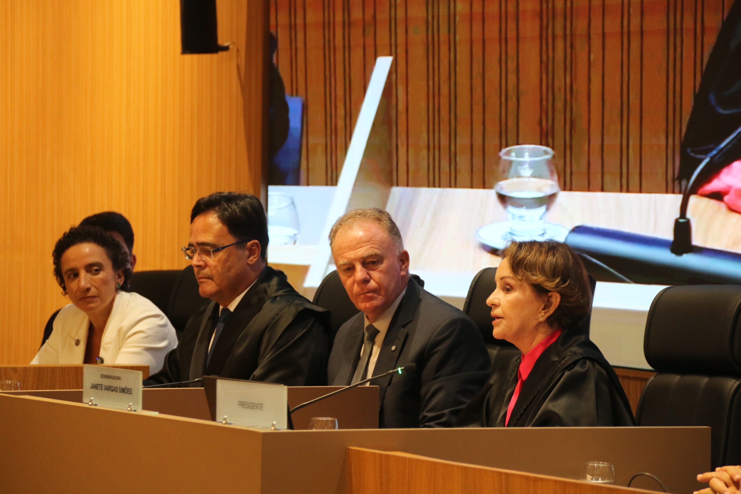 O Tribunal de Justiça do Espírito Santo (TJES) realizou, na tarde desta quinta-feira (05), a solenidade de abertura do Ano Judiciário. A primeira sessão de 2026 foi conduzida pela Presidente do TJES, Desembargadora Janete Vargas Simões, e contou com a presença do Governador do Estado, Renato Casagrande.